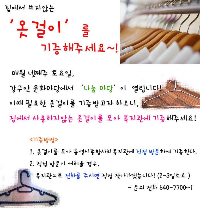 쓰지않는 옷걸이를 기증해주세요!