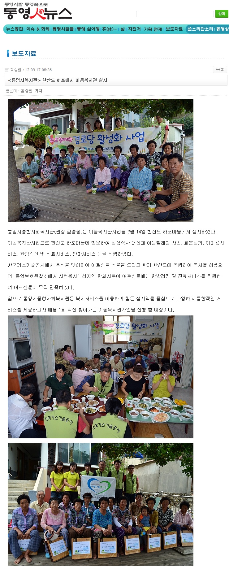 [통영인뉴스] <통영시복지관> 한산도 하포에서 이동복지관 실시